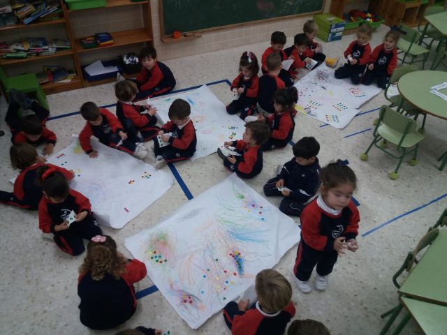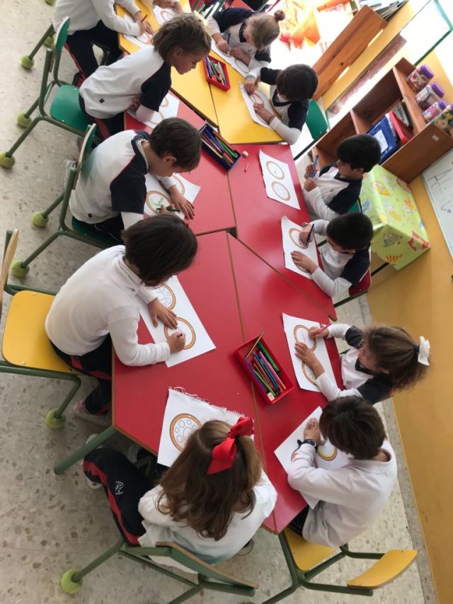 Durante una sesión semanal, con ayuda de la PT se trabaja de forma vivenciada las matemáticas, con recursos de ABN y Entusiasmat se trabajan las cantidades, la recta numérica, la resolución de problemas y la iniciación al cálculo.